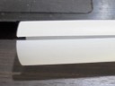 考えてみれば、当たり前のことだった。作ったばかりの時に求める長さに切ってしまうと、後で短くなてしまうので、何本か取れる長い状態で切っておいて、何日か後、一般的には1週間以上後に、求める長さに切る。重合が進み、分子が密になるからだ。硬さも増す。ということで、この製品も長く切っておいて、約一週間後に、スリットカットと定尺カットをすることにした。