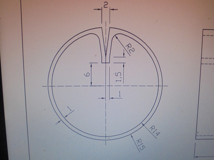 外径が30φ、もし、切り取っても閉じなければ、2mm幅をきりとればいいだけだ、そんな簡単にはいかないのが、私の作品だ。条件を変えて、何回かパイプを作って、方向に切ると、大体、4分の3の径迄小さくなった。それでは、30φにするには40φのパイプを作ればいいというこになった。そして、円周の4分の1を切り落とせば良い。これで、隙間の無い切り込みが入った30φのパイプができる。要するに90度を切り取ればいい。しかし、何回か、また条件を変えながら同じことをやってみると、平均的に、どうも、4分の3より少しだけ小さくなることが分かってきて、もとのパイプの径を適当に42Φにしてみた。また、小さくなって、2mm開けなければならないので、95度を切り落とすことにした。